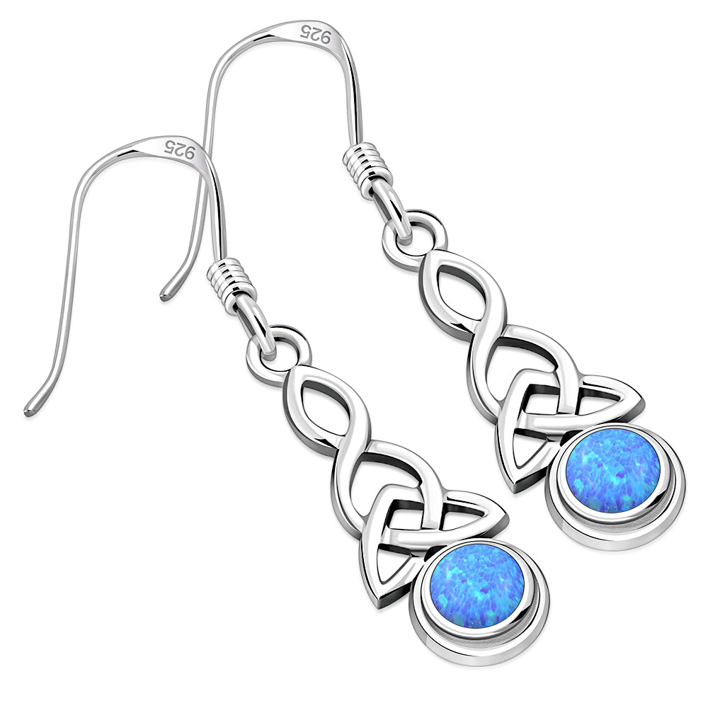 Long Synthetic Opal Trinity Knot Silver Earrings
