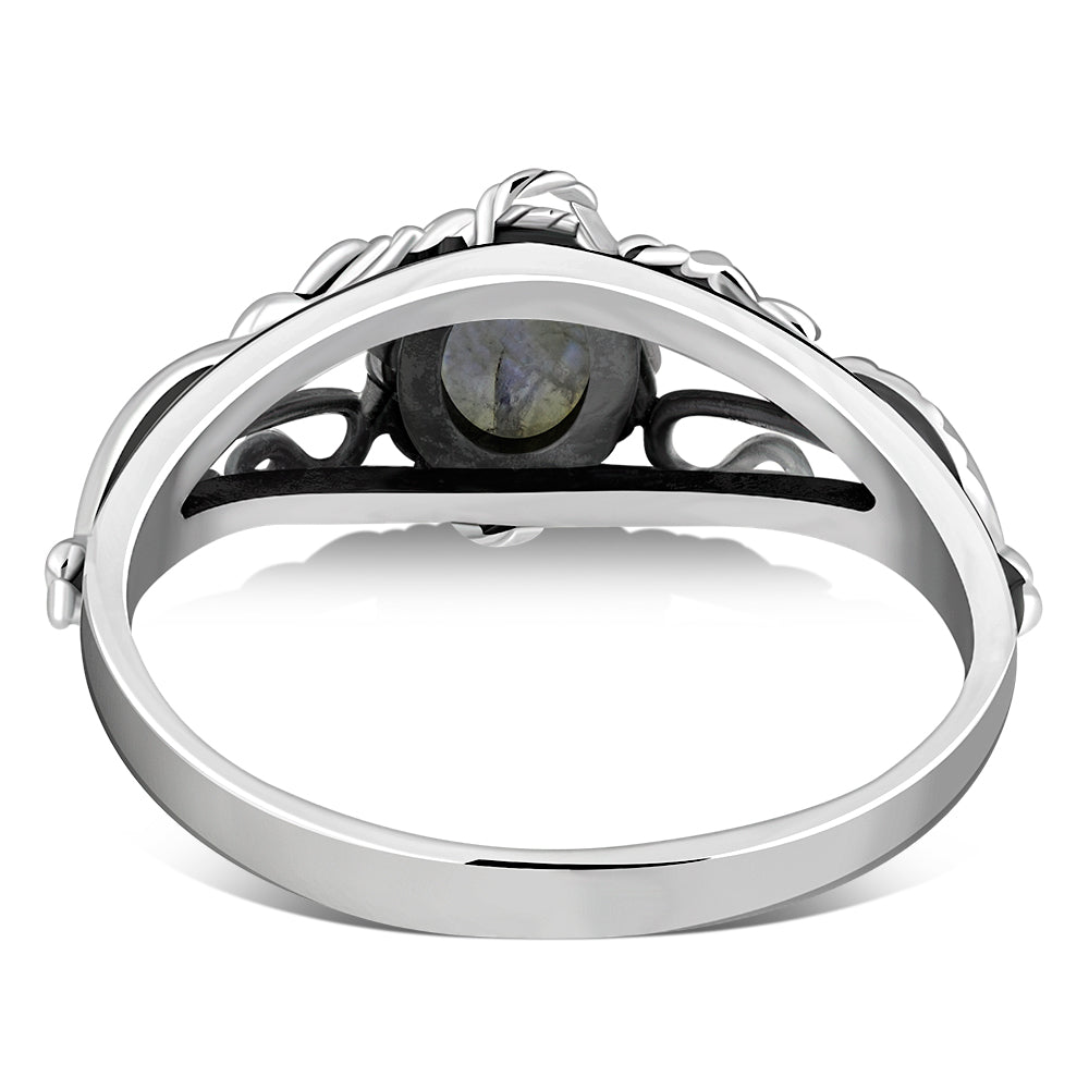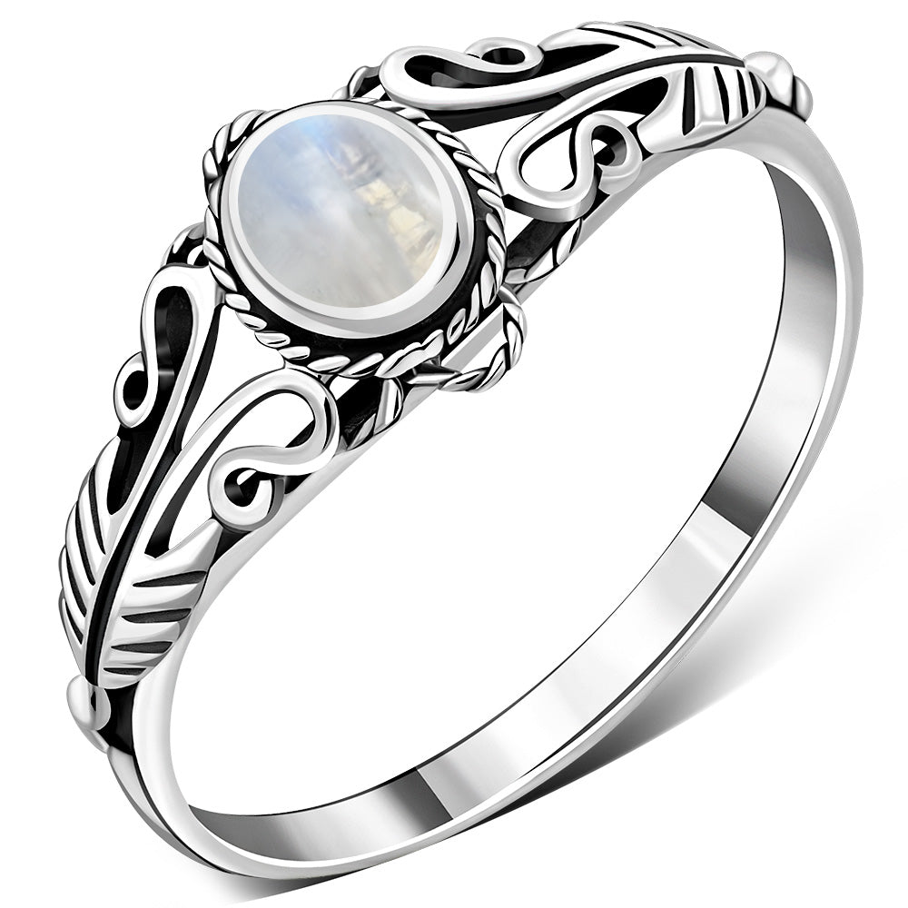 Ethnic Rainbow Moon Stone Silver Ring