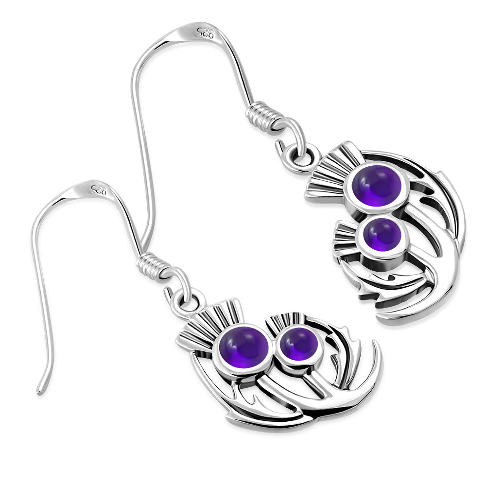 Amethyst Cab Stone Sterling Silver Thistle Earrings