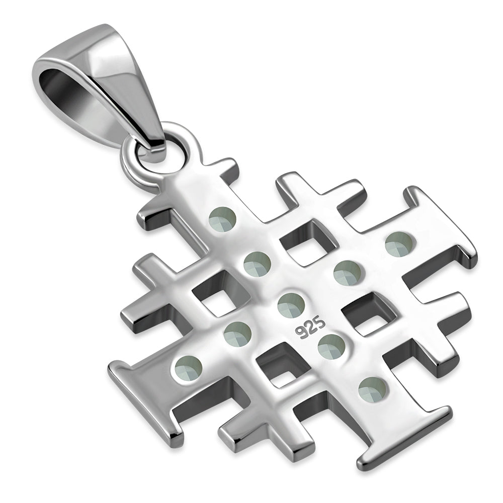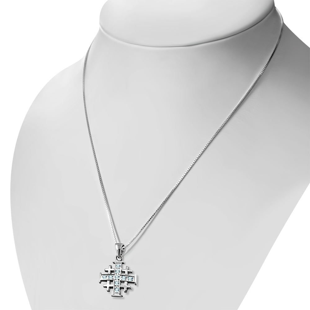 Jerusalem Cross Silver Pendant set w/ Blue Topaz Stone