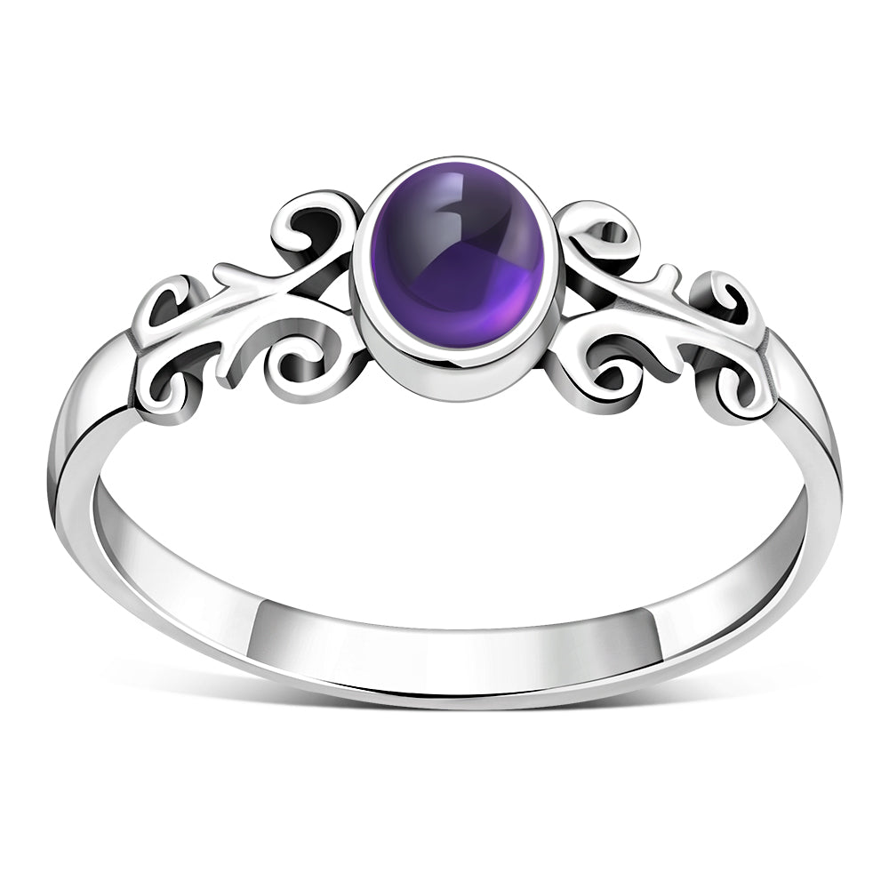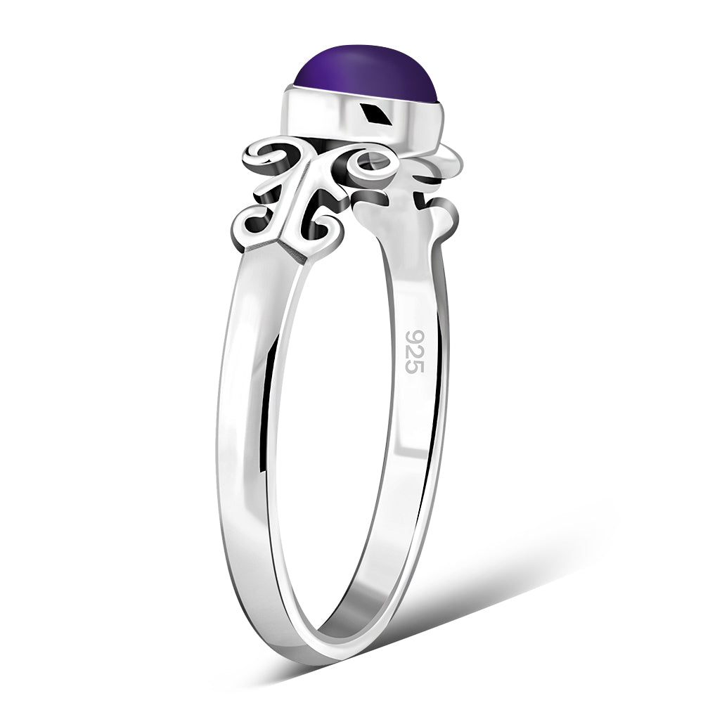 Ethnic Style Amethyst Stone Silver Ring