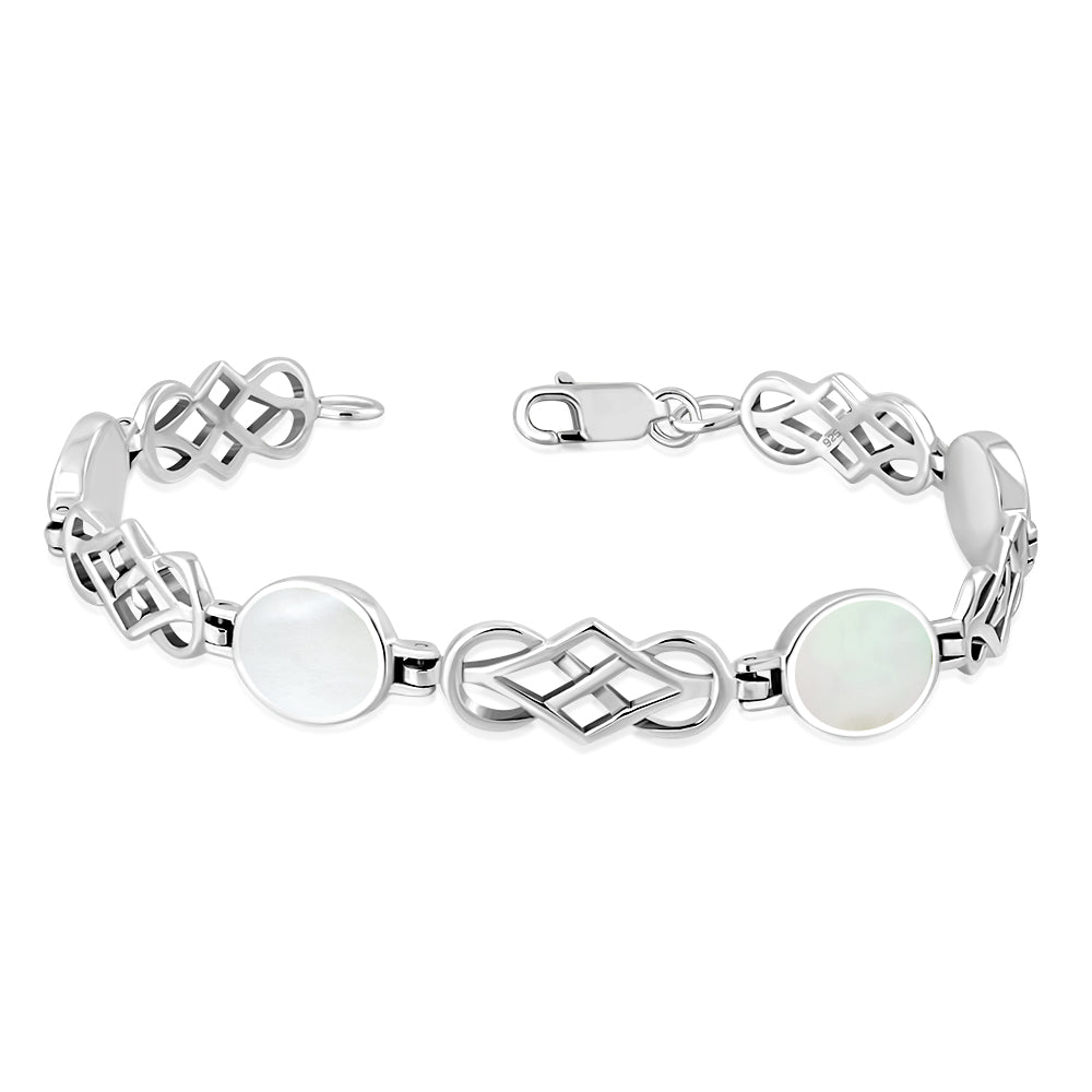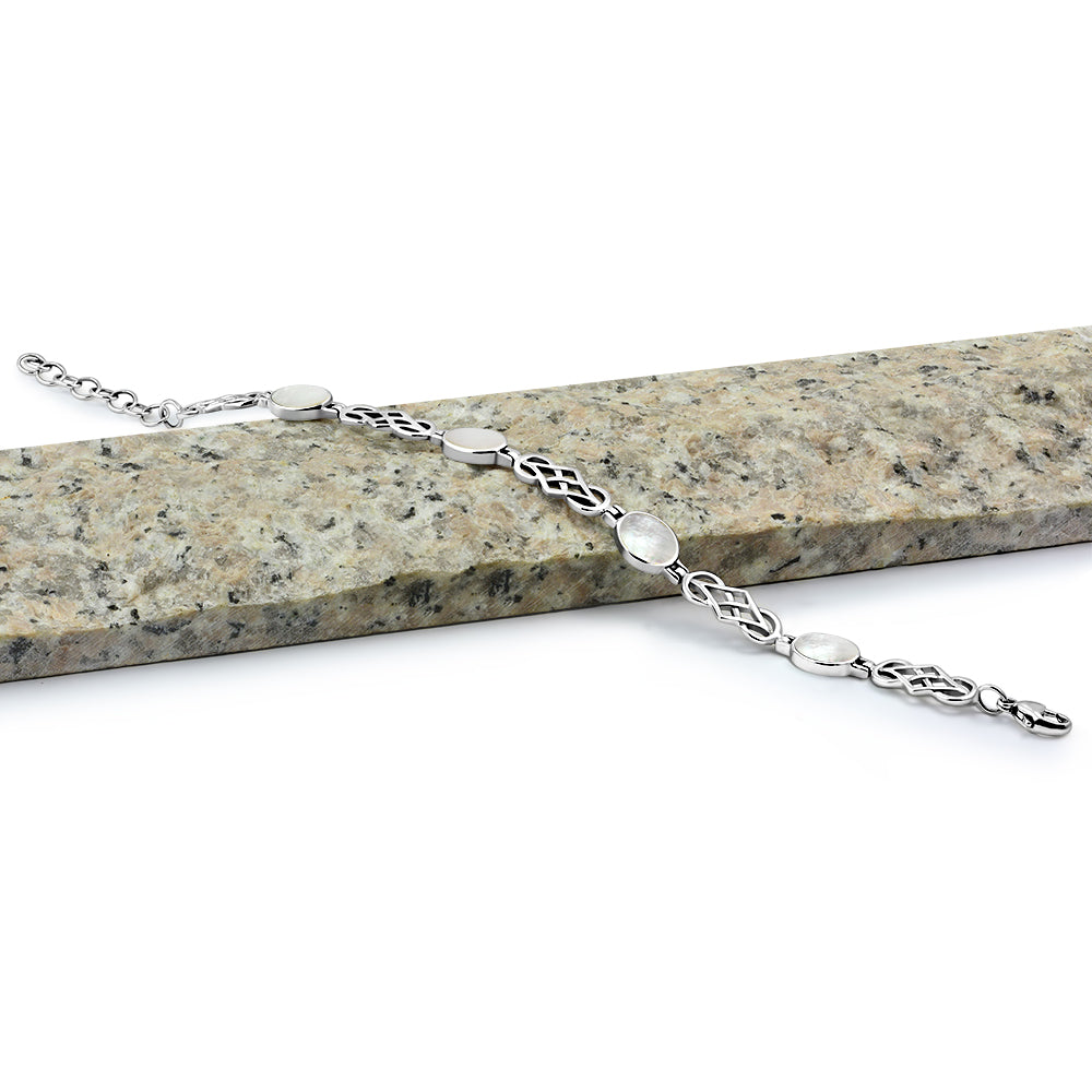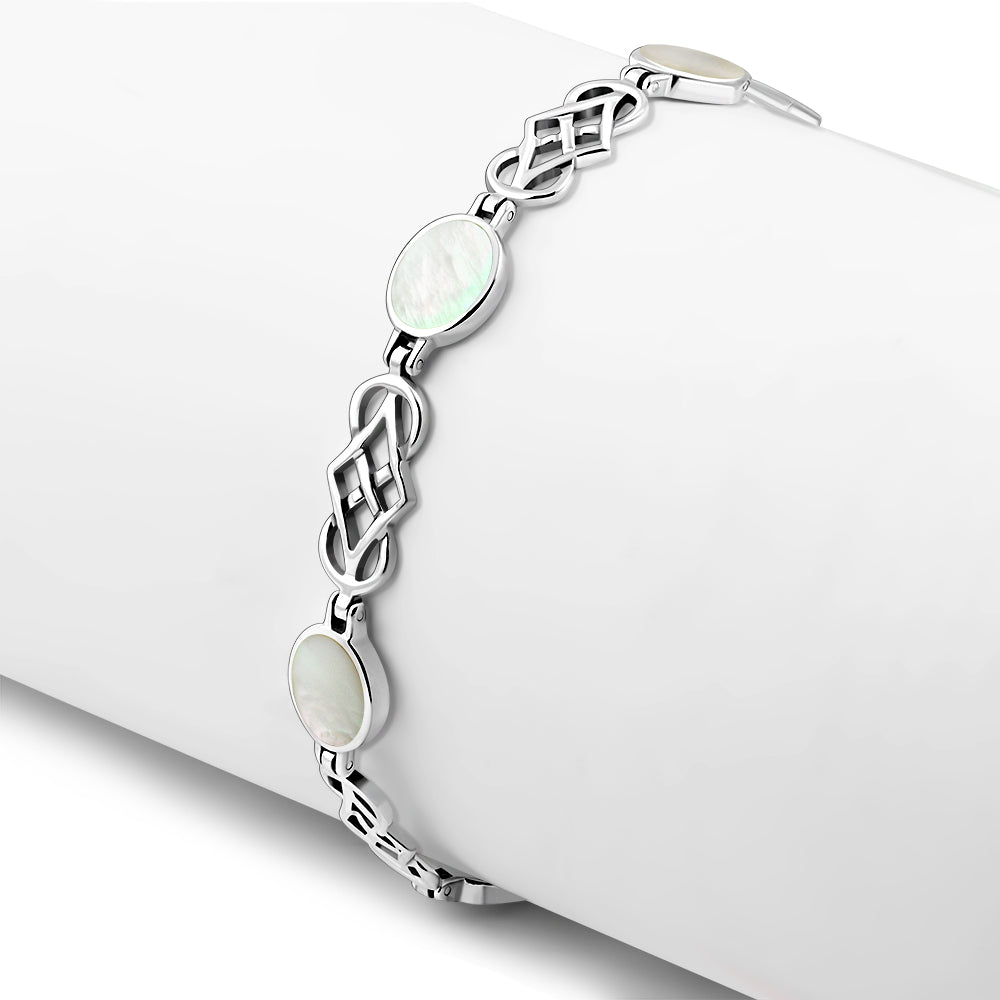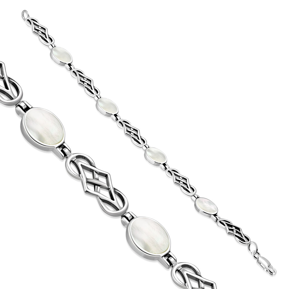 Mother Of Pearl Shell Oval Links Celtic Knot Silver Bracelet