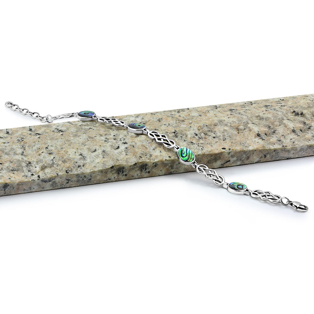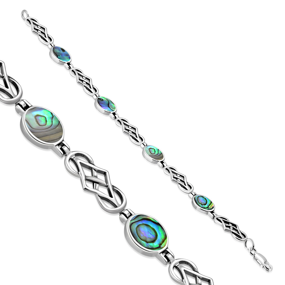 Abalone Shell Oval Links Celtic Knot Silver Bracelet