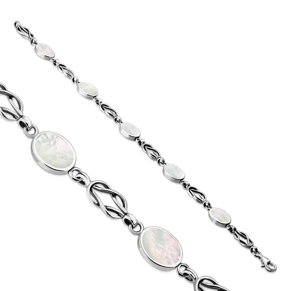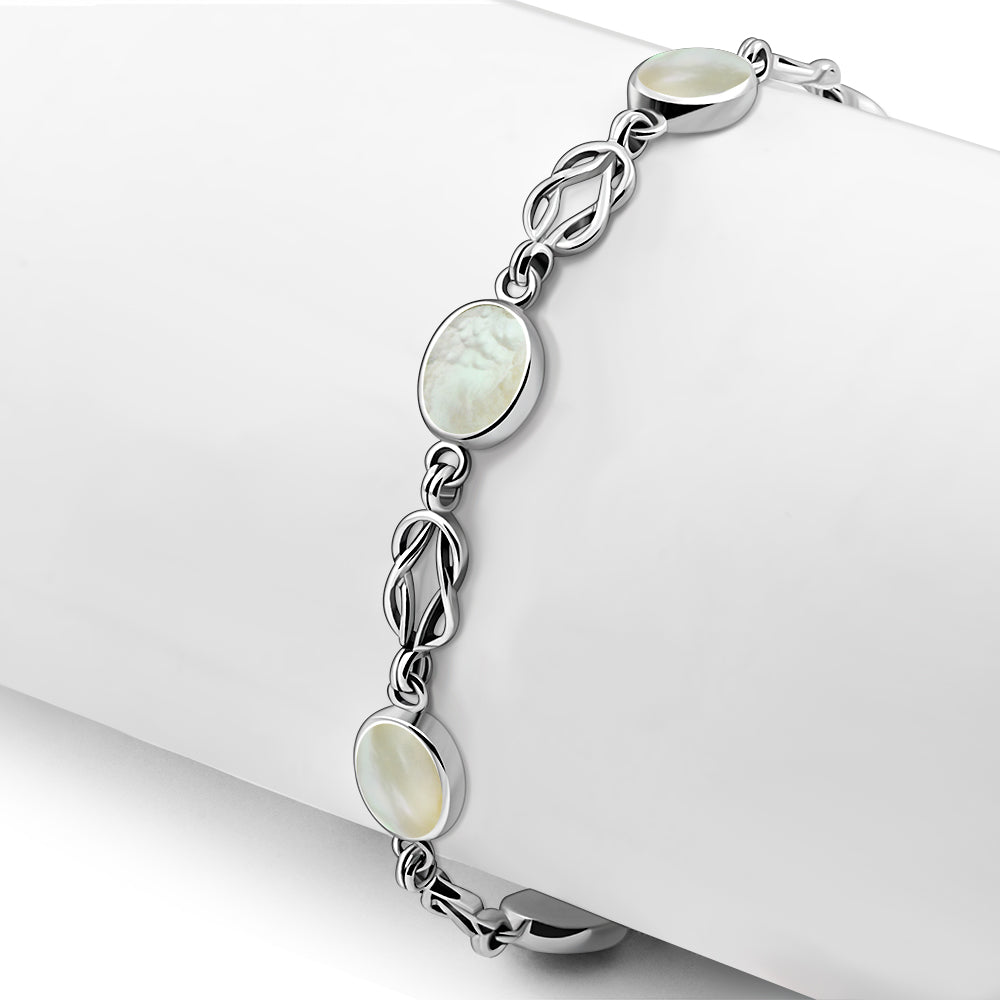 Mother Of Pearl Oval Links Celtic Knot Silver Bracelet