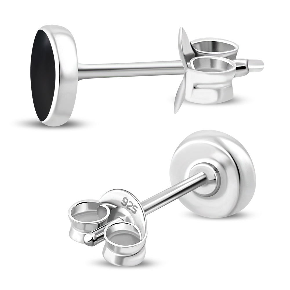4.80mm | Black Onyx Round Sterling Silver Stud Earrings