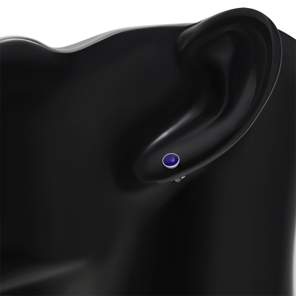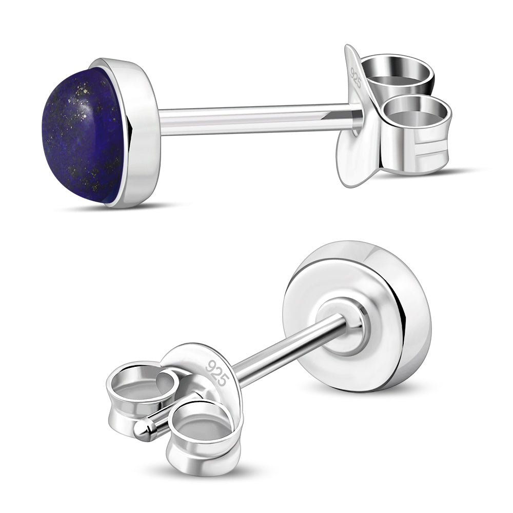 4.80mm | Lapis Lazuli Blue Stone Round Sterling Silver Stud Earrings