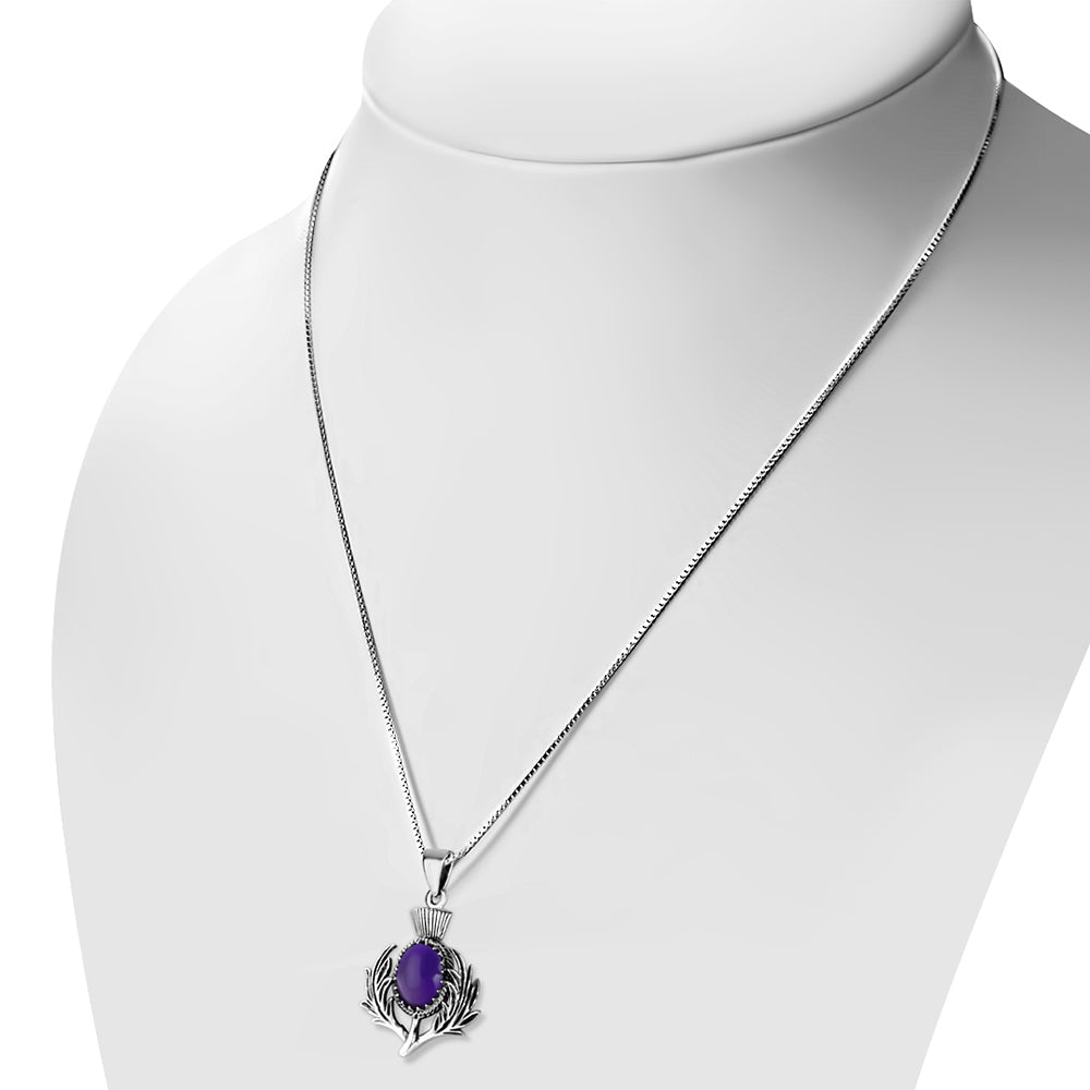 This pendant combines the captivating beauty of amethyst with the enduring symbol of Scottish strength and resilience. Amethyst is believed to promote peace, calmness, and intuition, while the thistle represents protection and determination. Show your Scottish pride or celebrate inner strength.