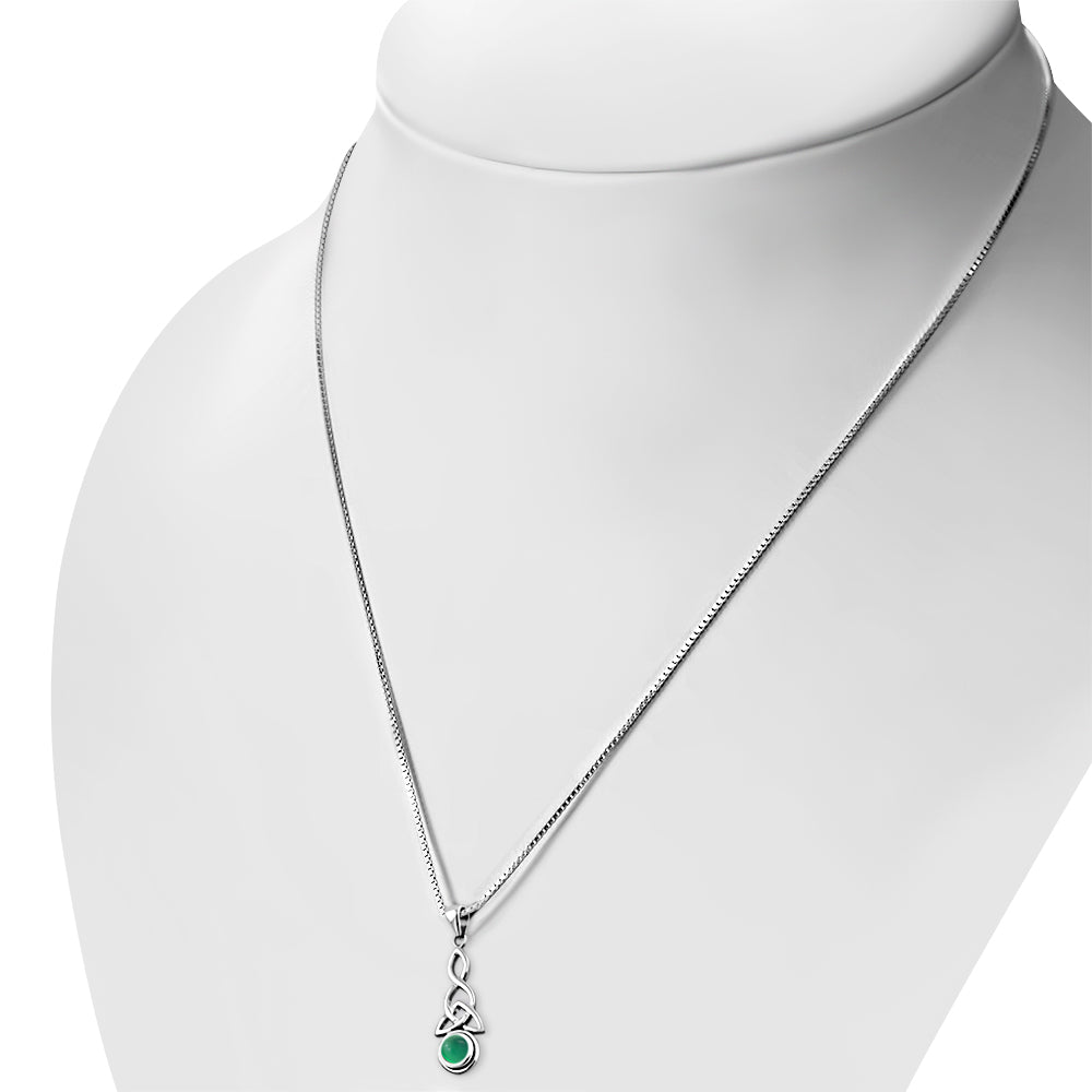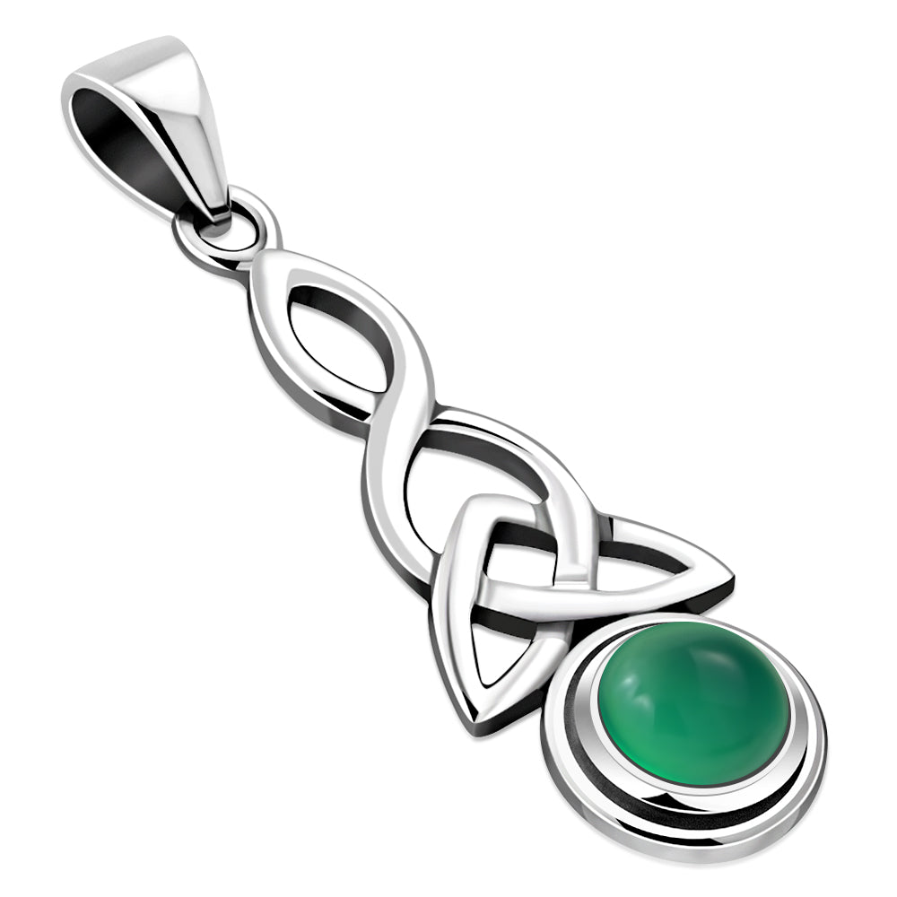 Long Green Agate Celtic Trinity Knot Silver Pendant