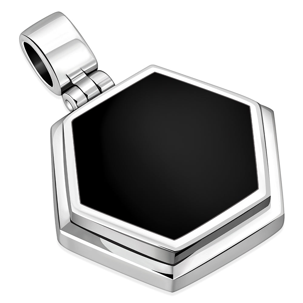 The hexagon shape offers a modern twist on a timeless design. Black onyx is believed to offer protection, strength, and encourages self-confidence.