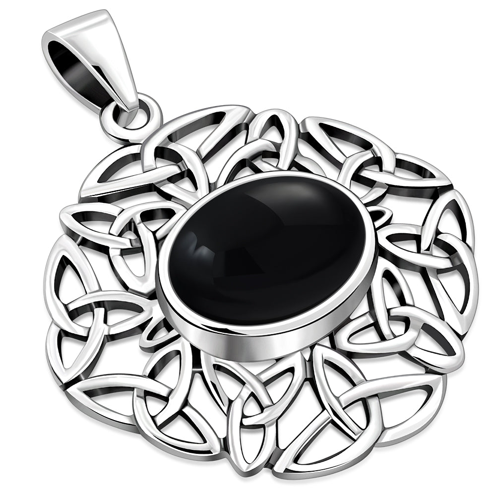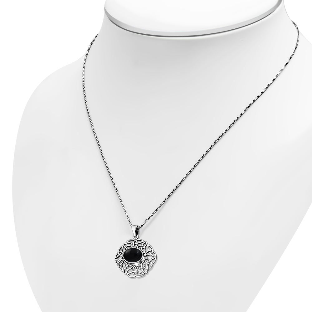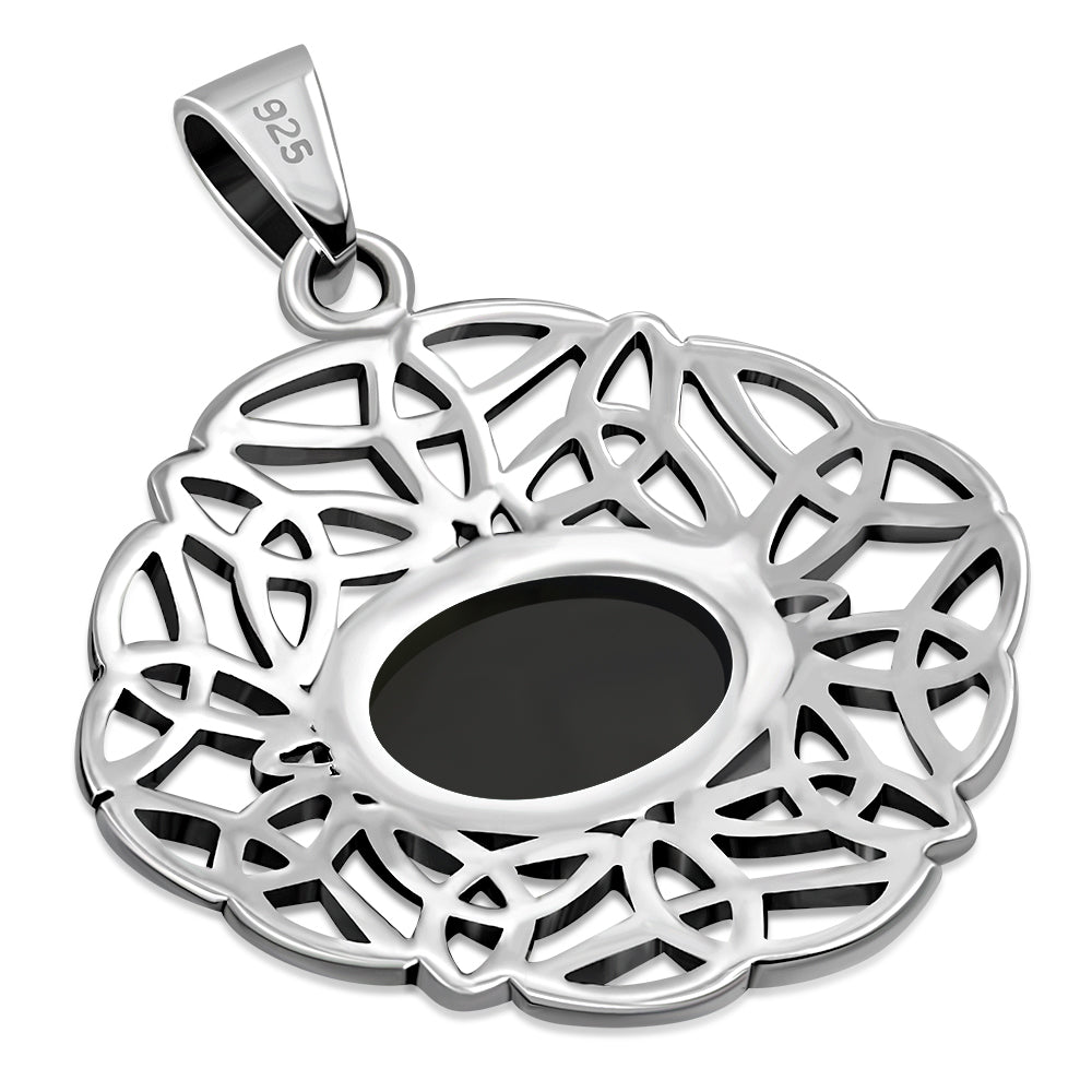 Black Onyx Oval Celtic Knot Silver Pendant