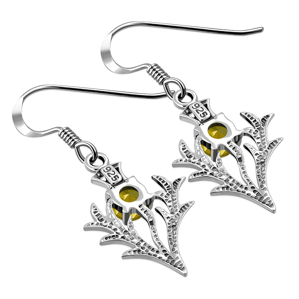 Citrine Scottish Thistle Sterling Silver Dangle Drop Hook Earrings