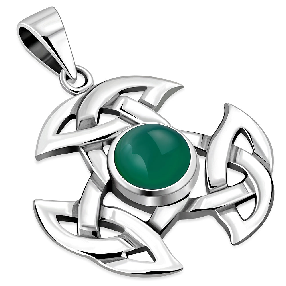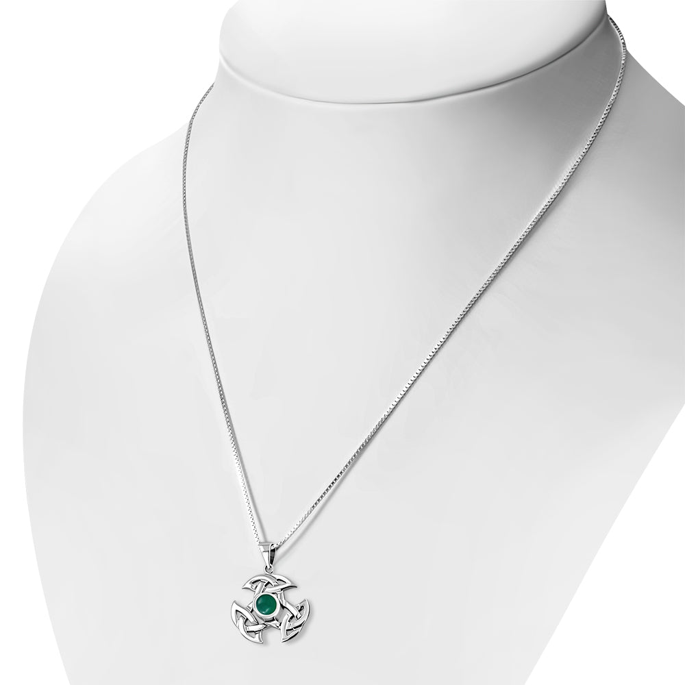 Silver Celtic Trinity Knot Pendant set w/ Green Agate