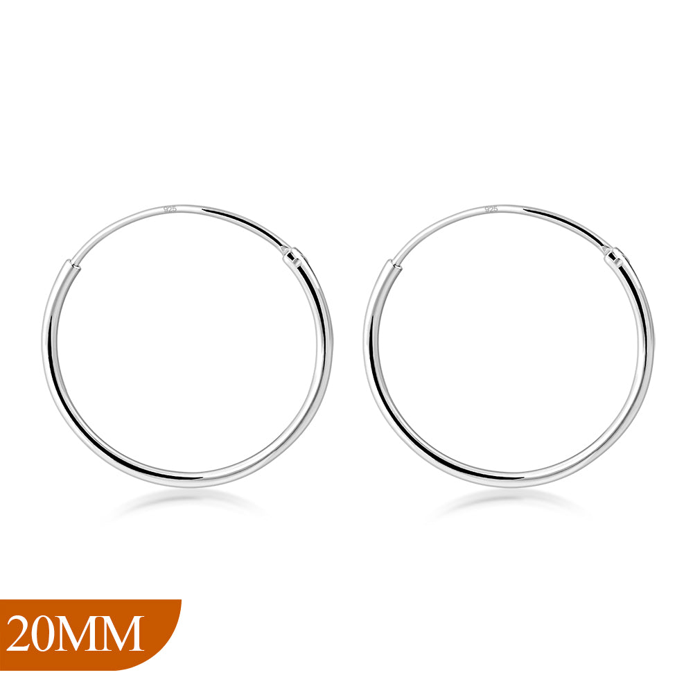 20mm Wide - 1.2mm Thick Silver Hoop Earrings