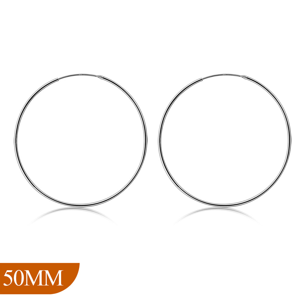 50mm Wide - 1.2mm Thick Silver Hoop Earrings