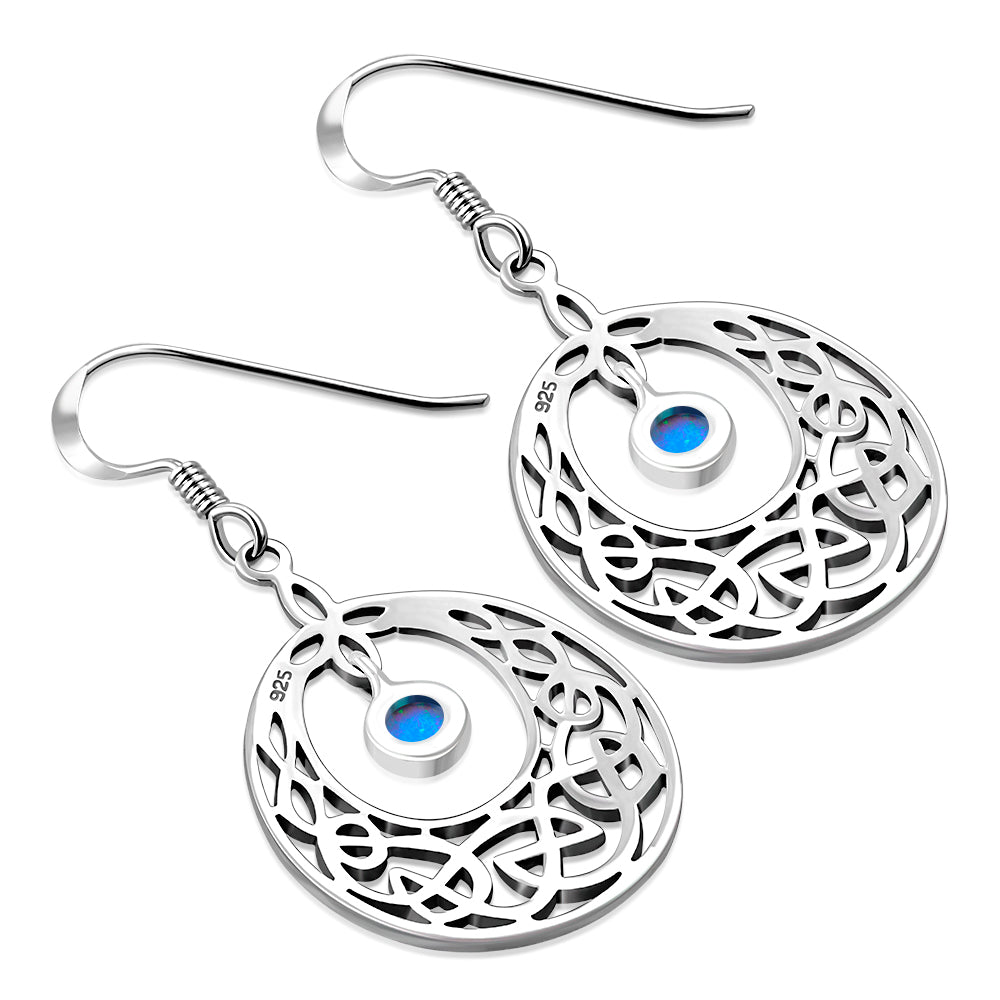 Synthetic Azure Opal Celtic Knot Silver Earrings