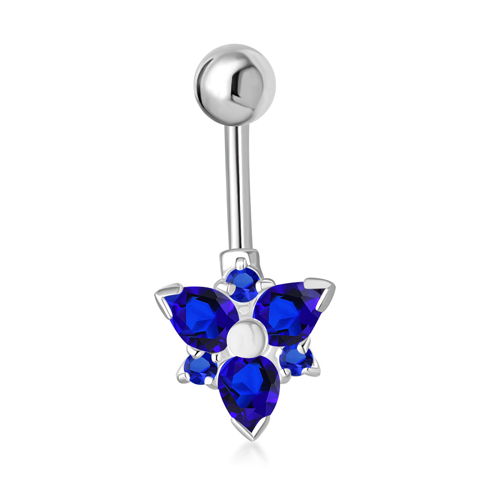 Blue Sapphire CZ Triangle Silver Belly Ring
