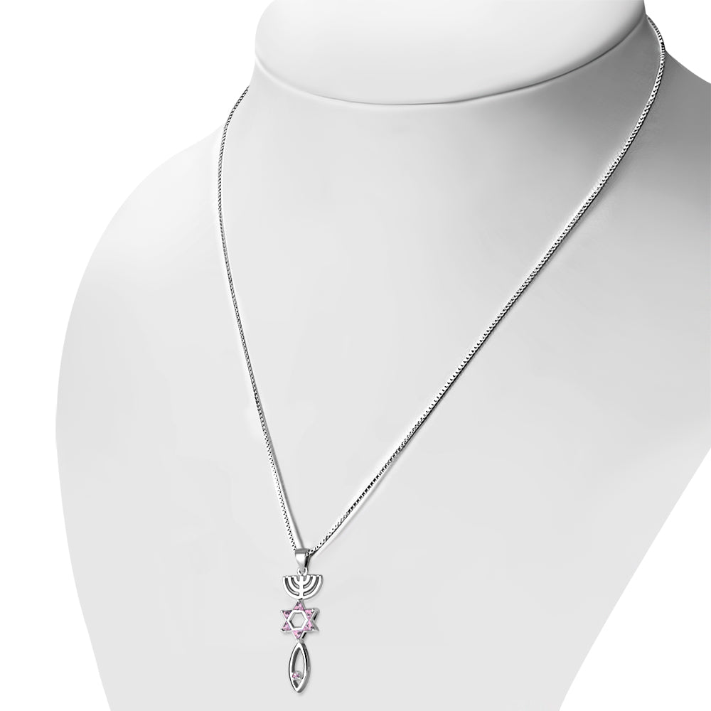 Pink CZ Messianic Seal of Jerusalem Silver Pendant