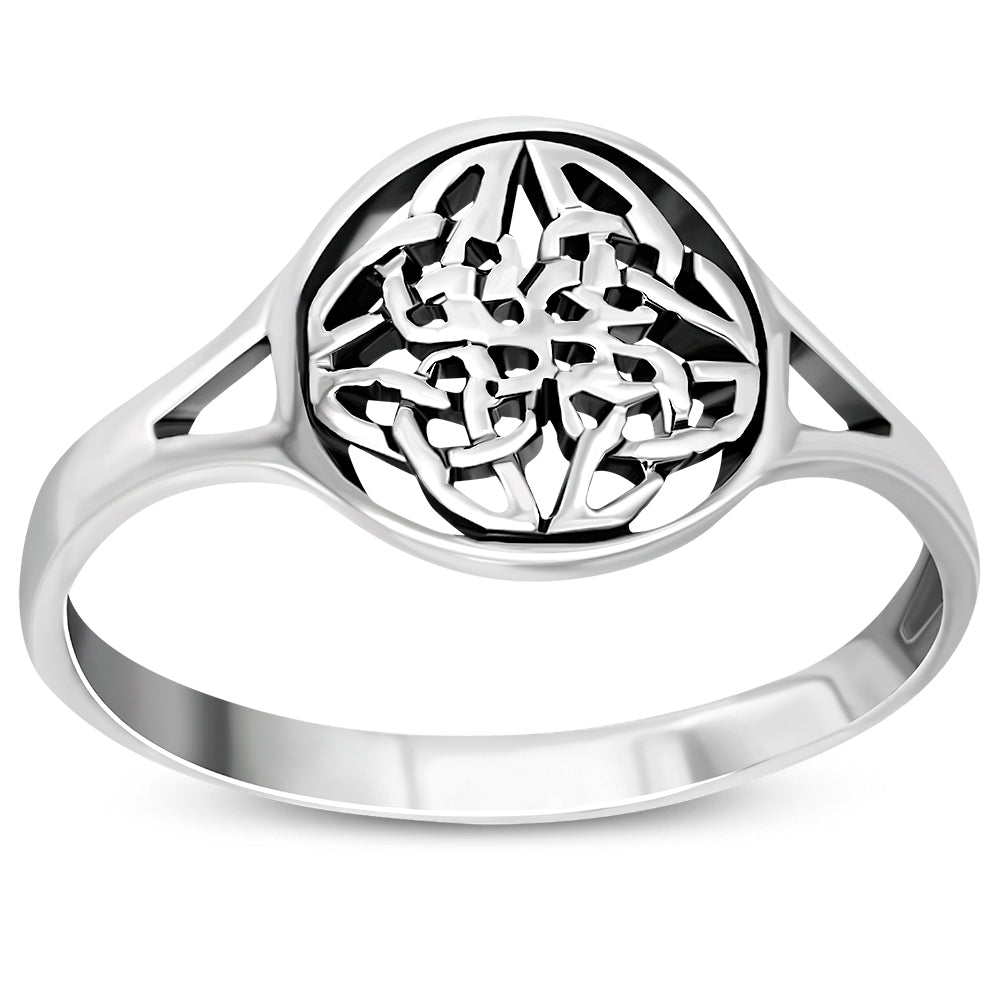 Round Design Celtic Trinity Knot Silver Ring
