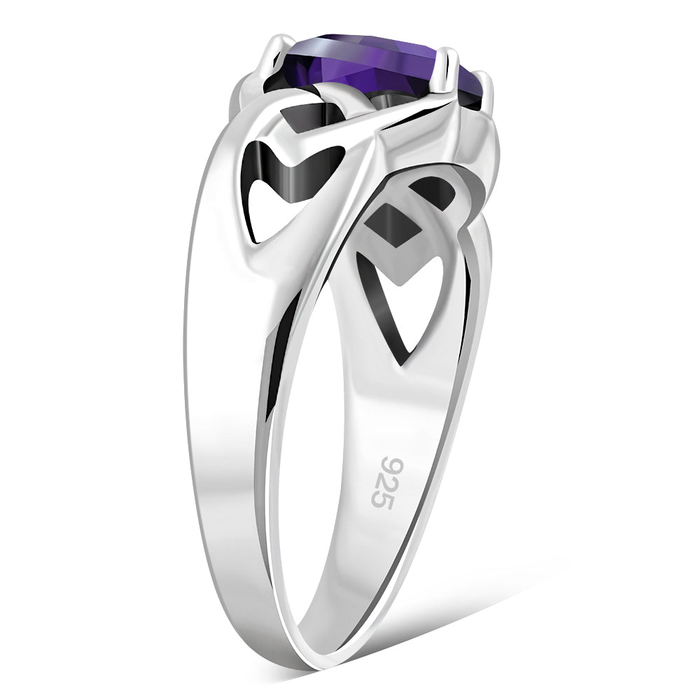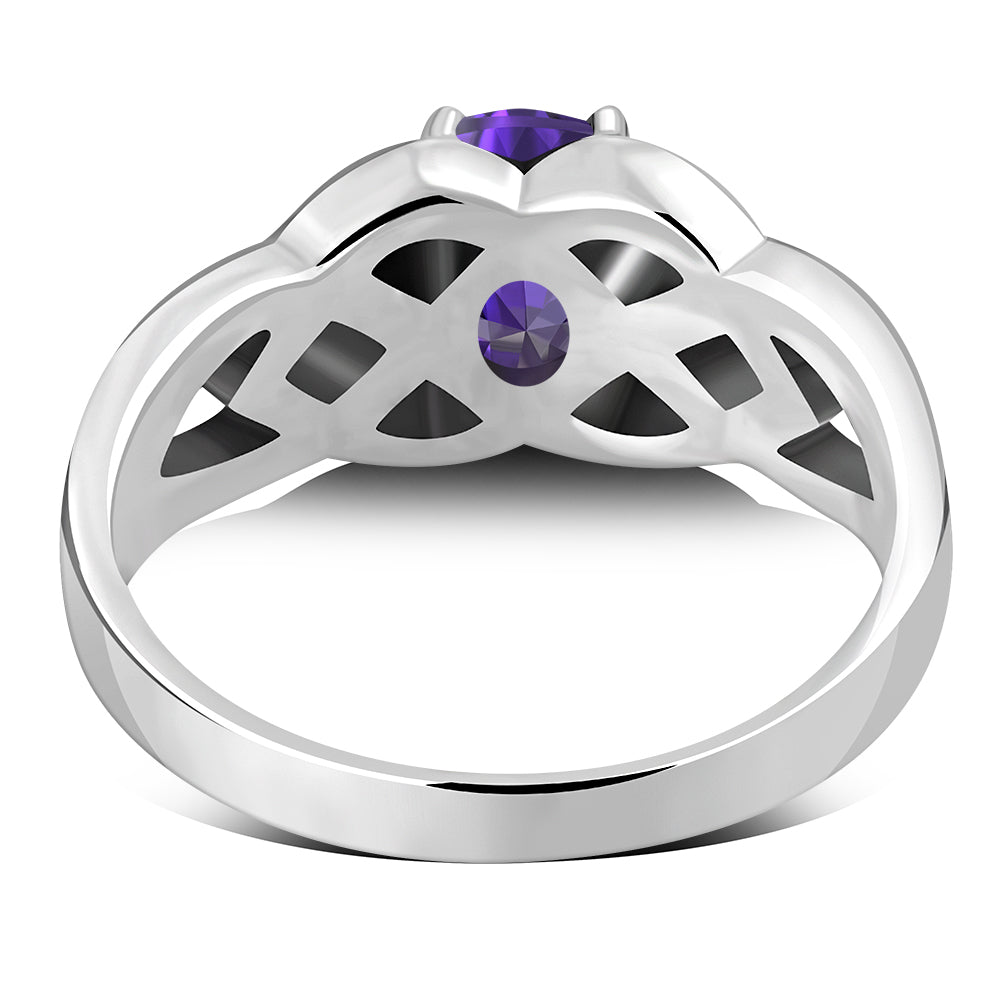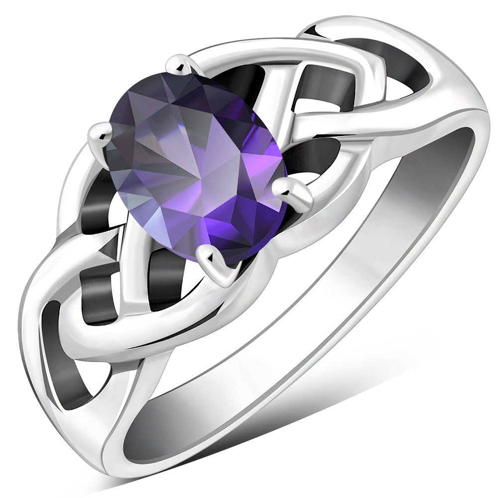 Amethyst CZ Celtic Knot Silver Ring