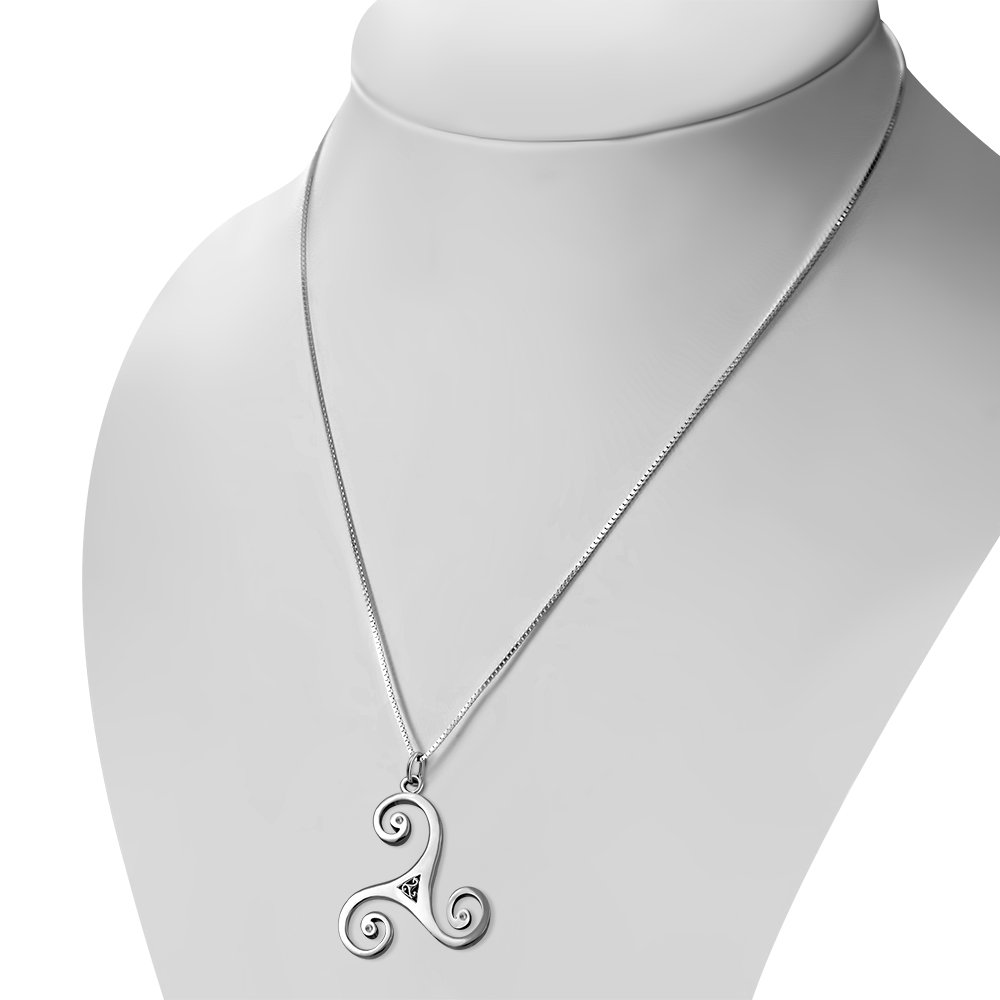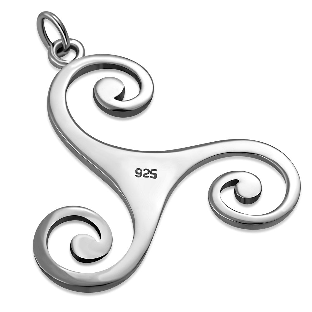 Large Celtic Triskele Triple Spiral Silver Pendant