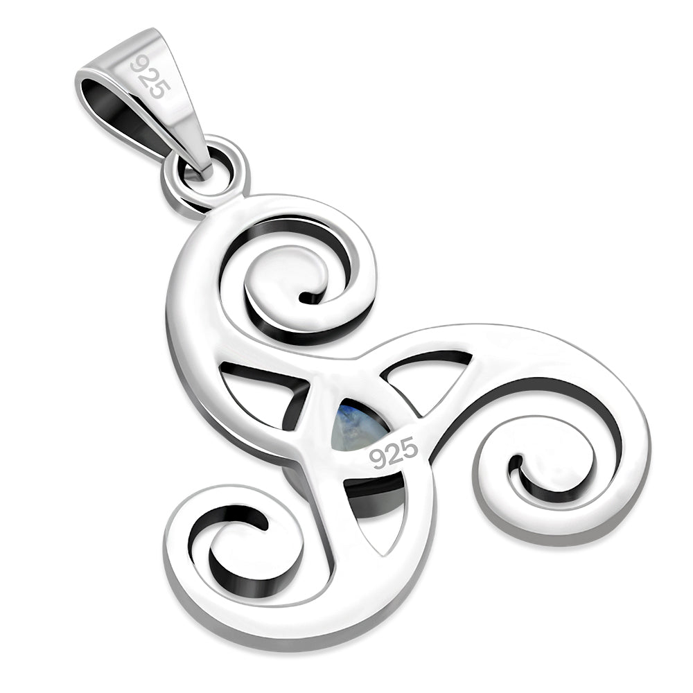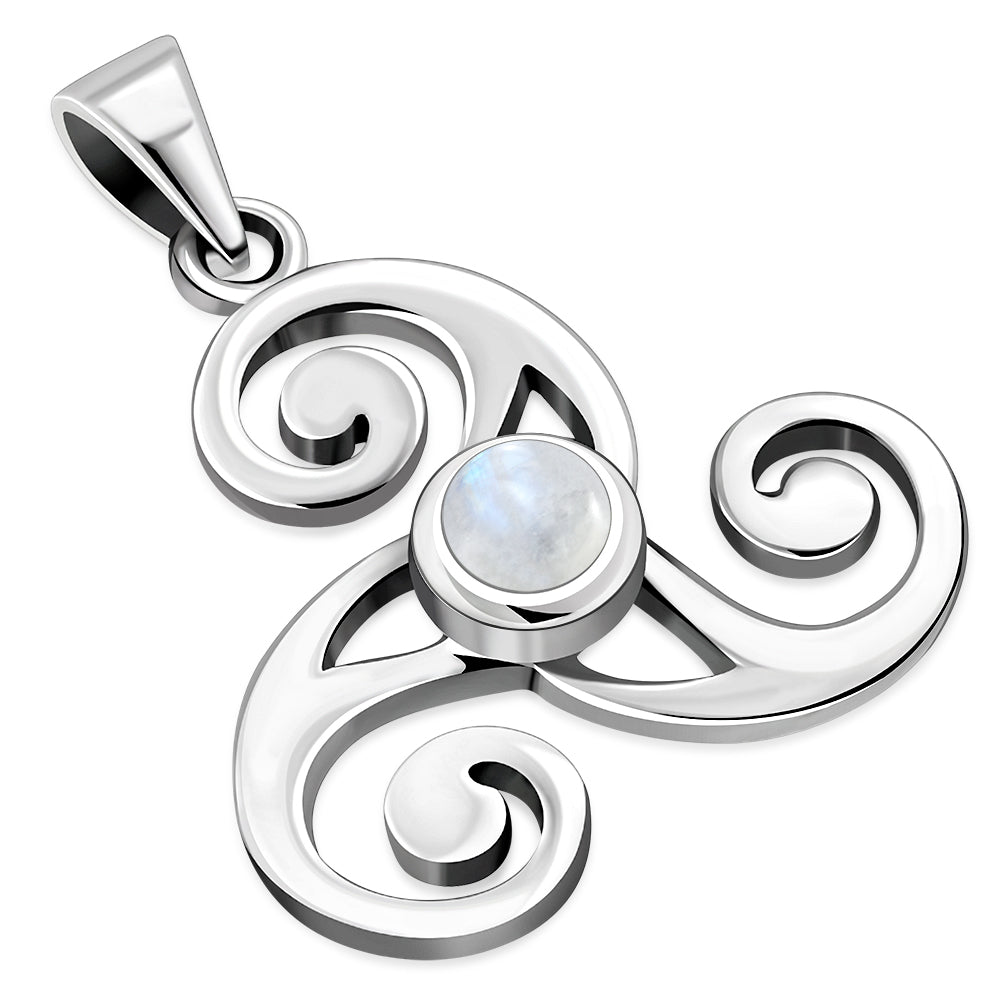 Rainbow Moon Stone Celtic Triskele Triple Spiral Silver Pendant