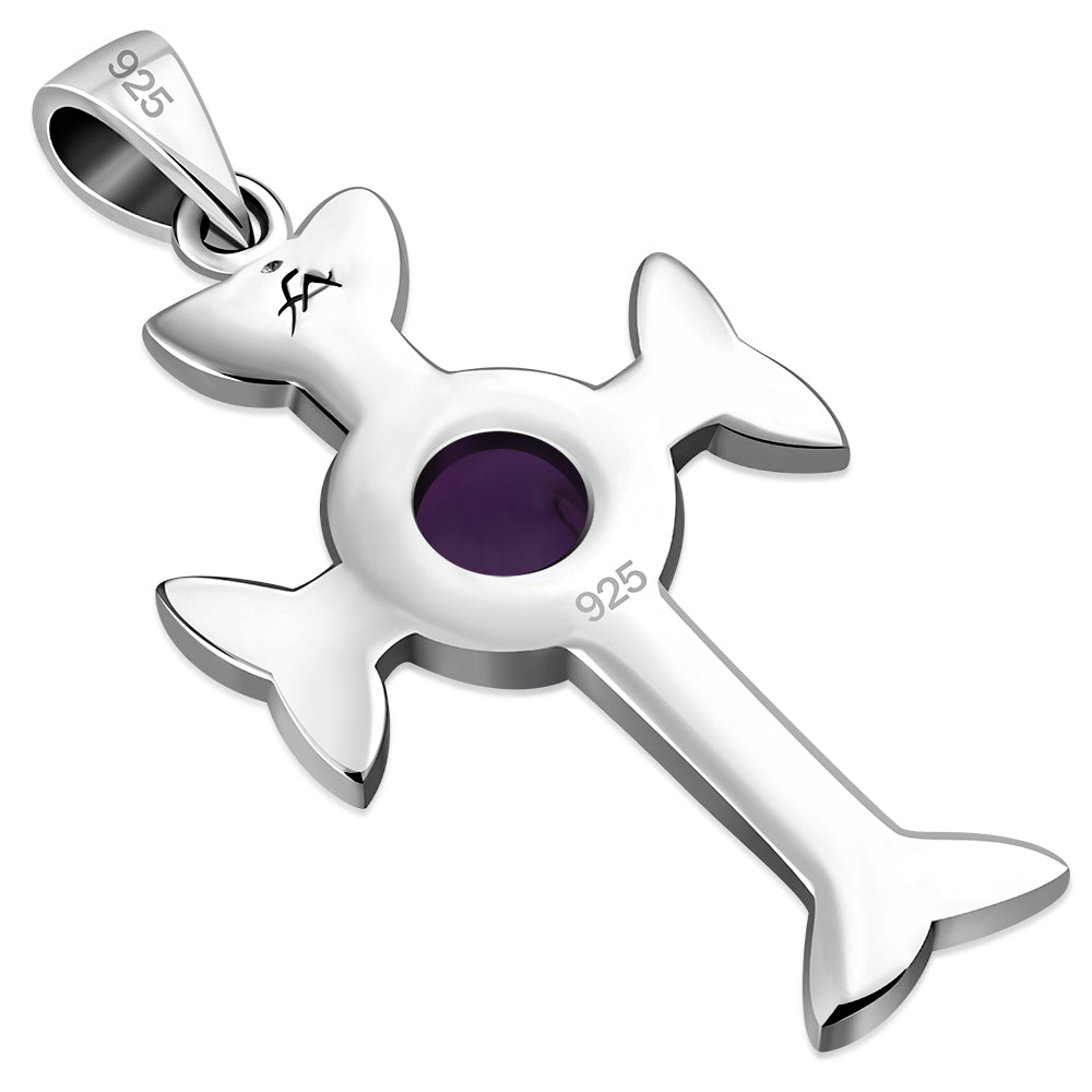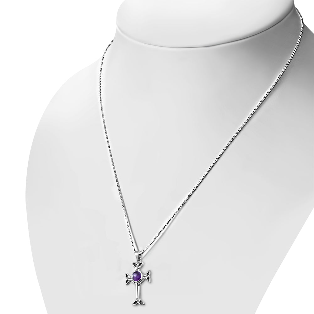 Celtic Trinity Knot Cross Silver Pendant set w/ Amethyst Stone