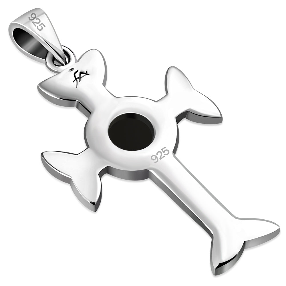 Black Onyx Trinity Knot Cross Silver Pendant