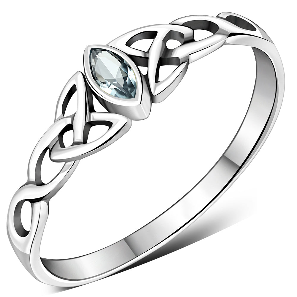 Thin Celtic Knot Silver Ring, set w/ Blue Topaz CZ