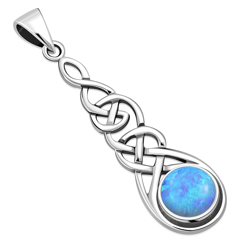 Long Celtic Pendant set w/ Synthetic Blue Opal