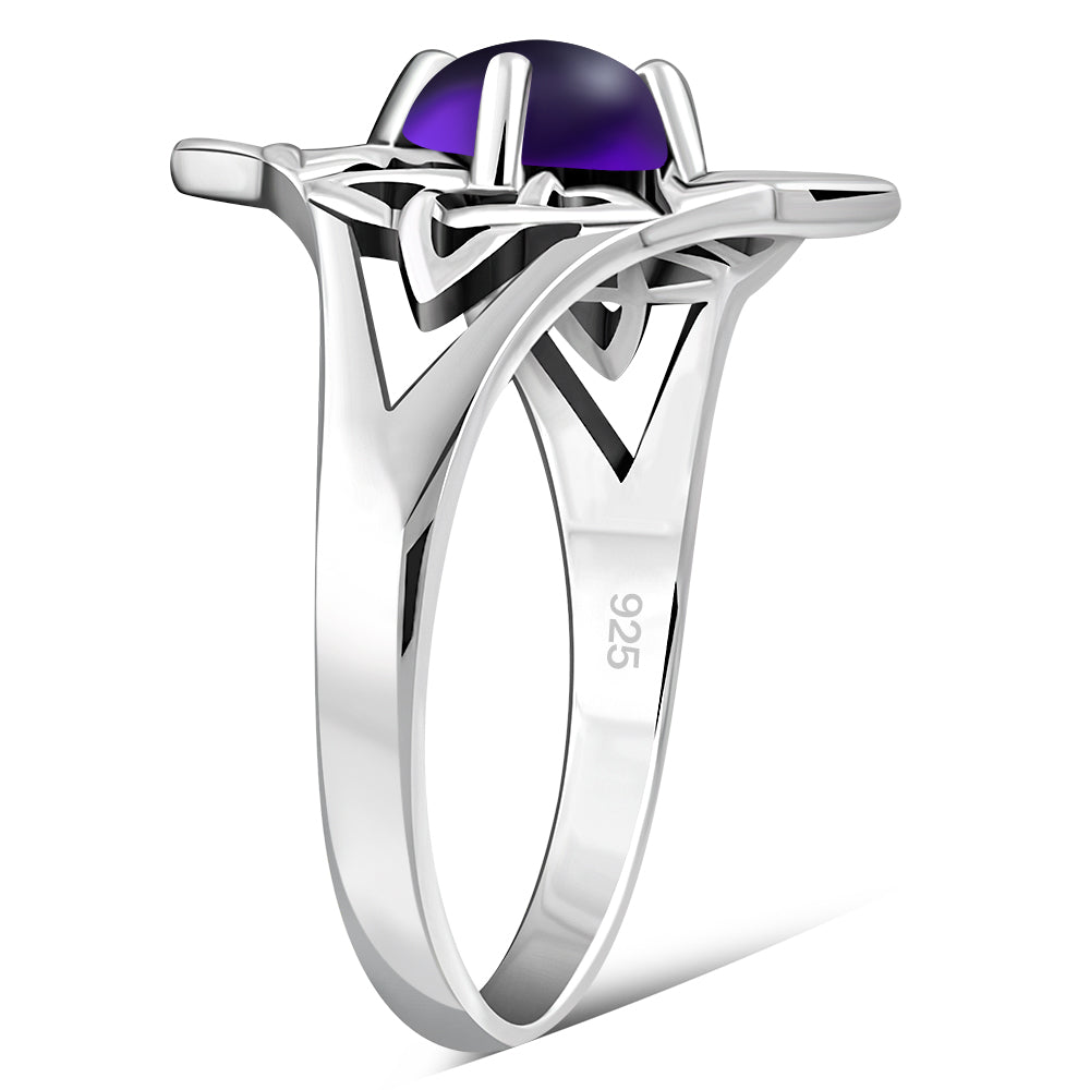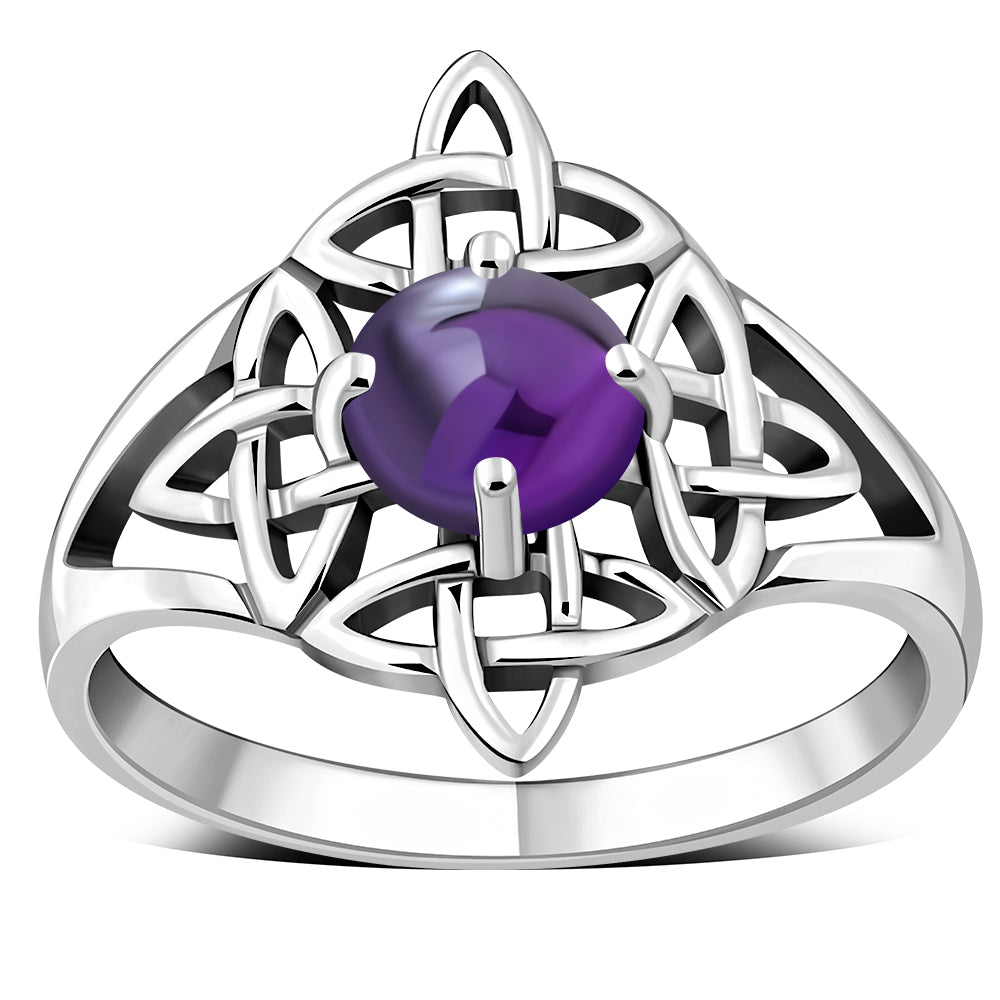 Amethyst Stone Celtic Knot Silver Ring