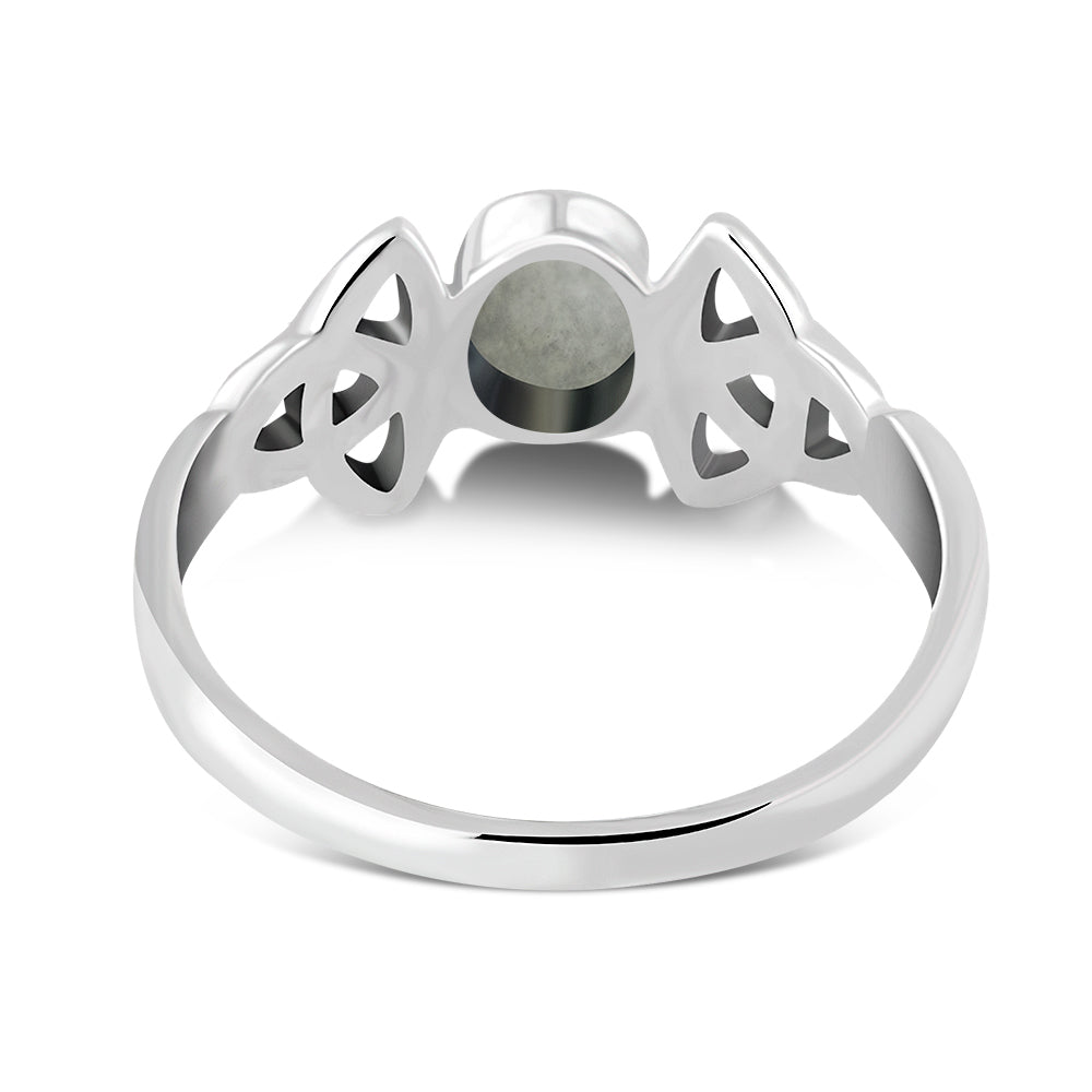 Celtic Trinity Knot Rainbow Moonstone Silver Ring
