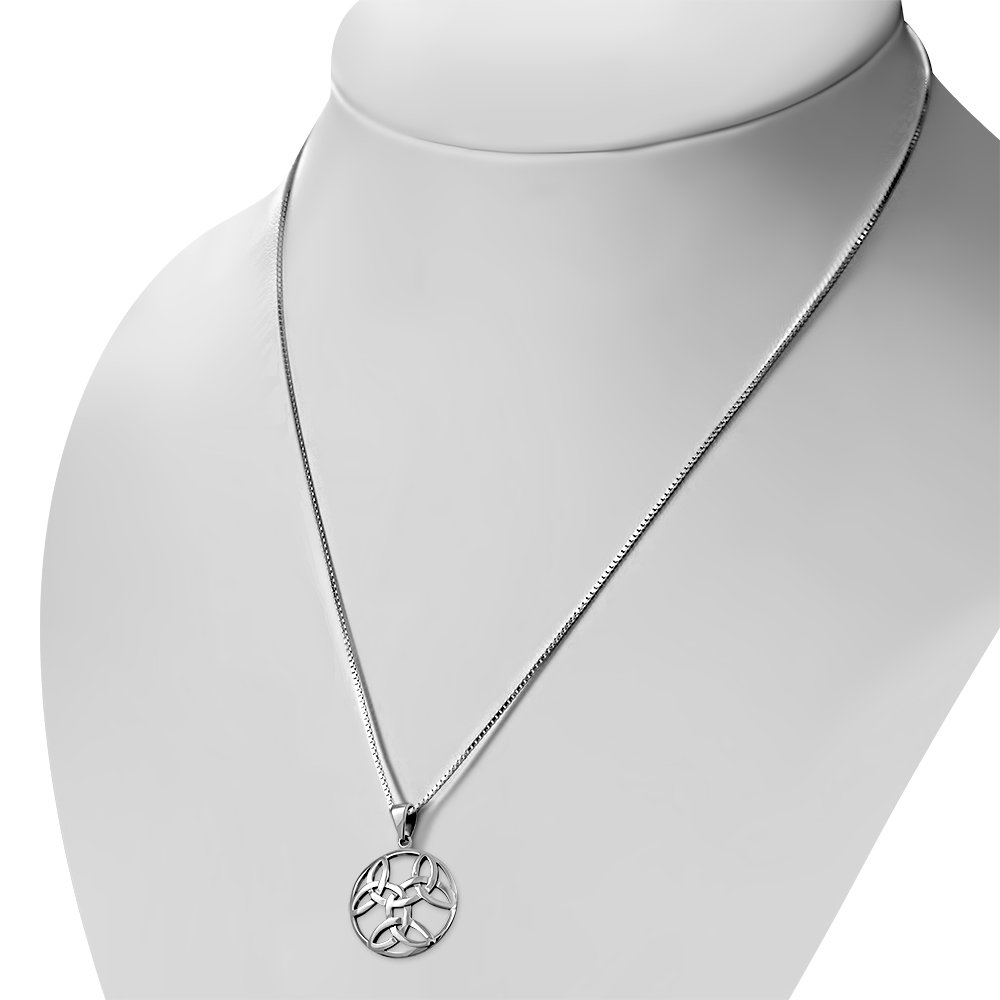 Large Round Trinity Knot Silver Pendant