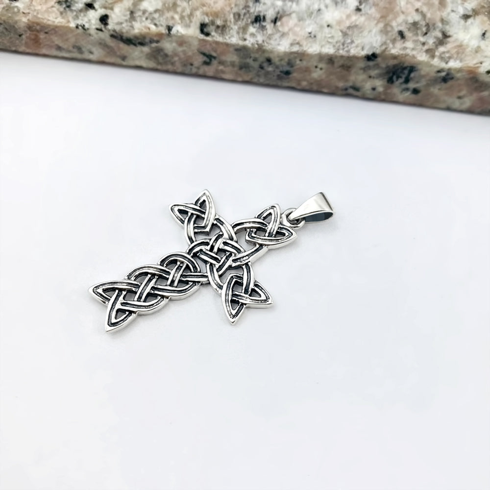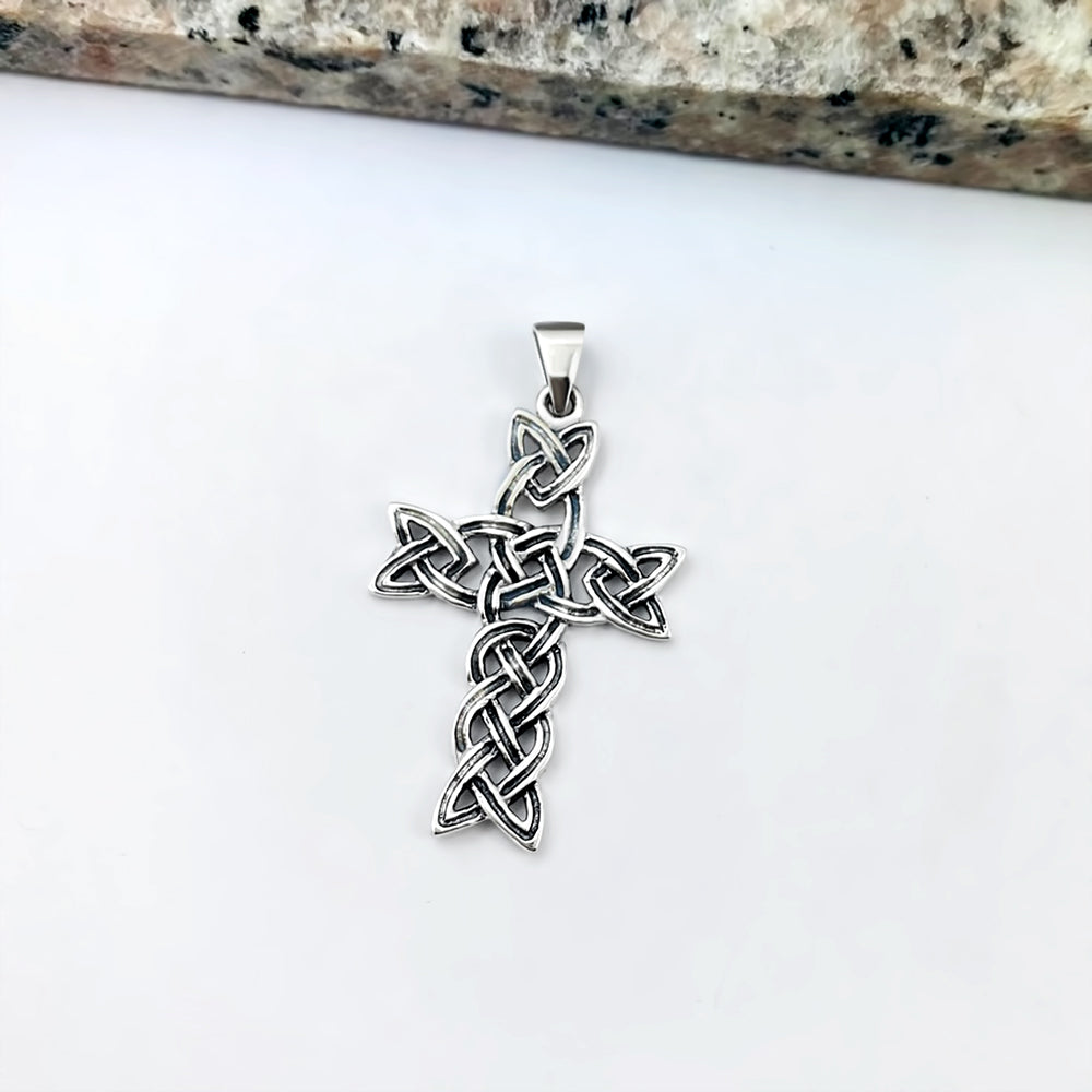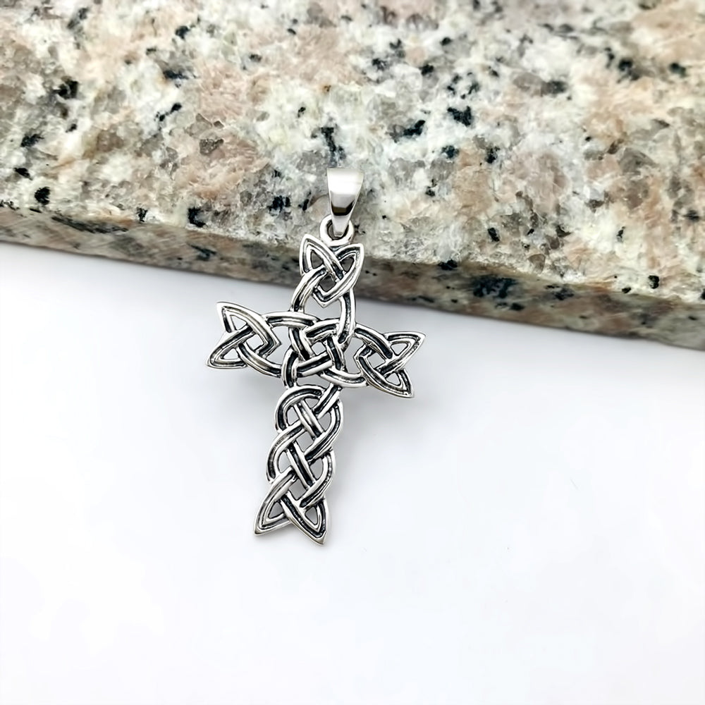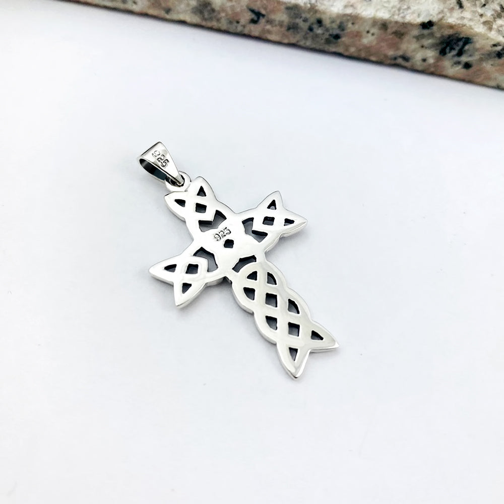 Medium Celtic Sterling Silver Cross Pendant
