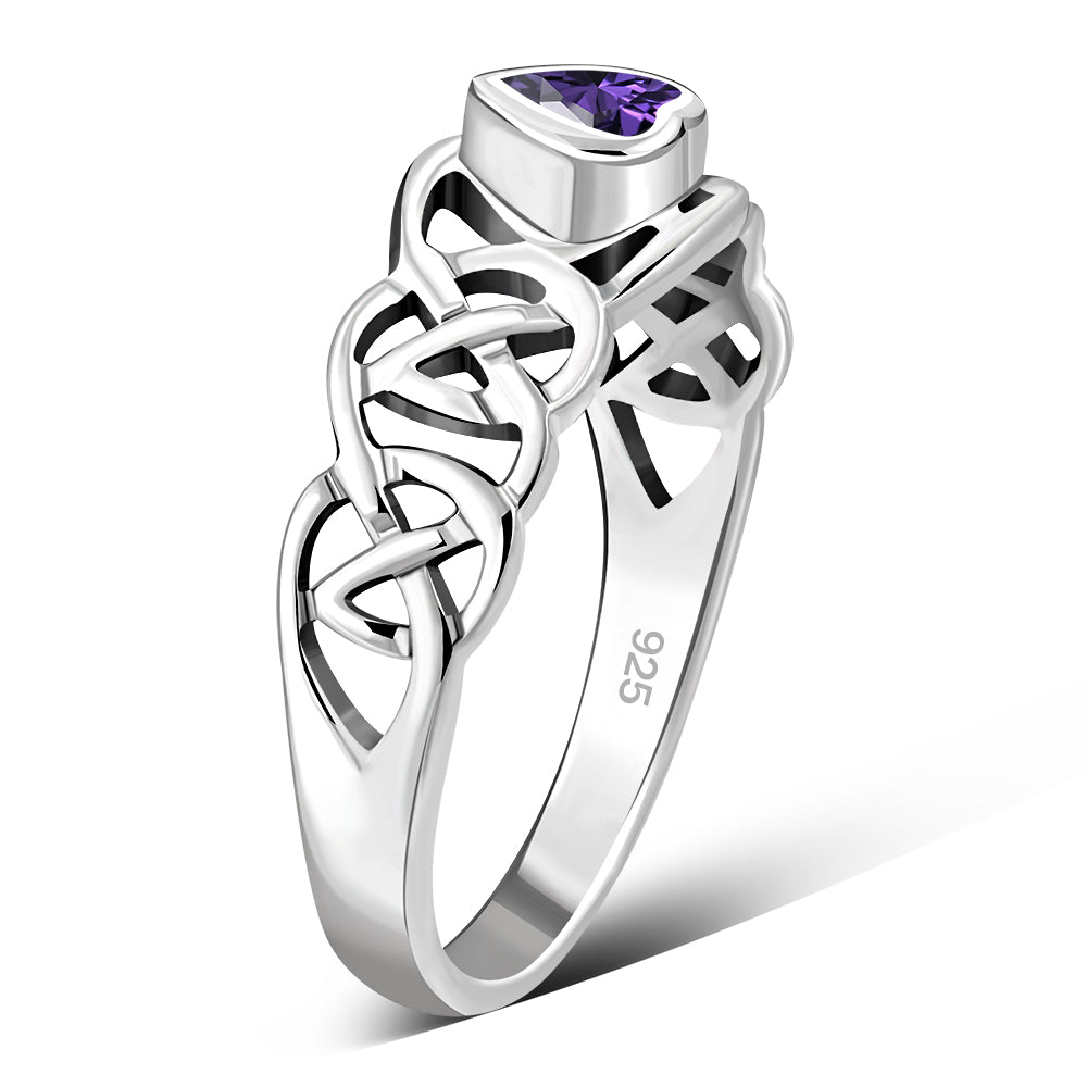 Celtic Knot Amethyst CZ Heart Silver Ring
