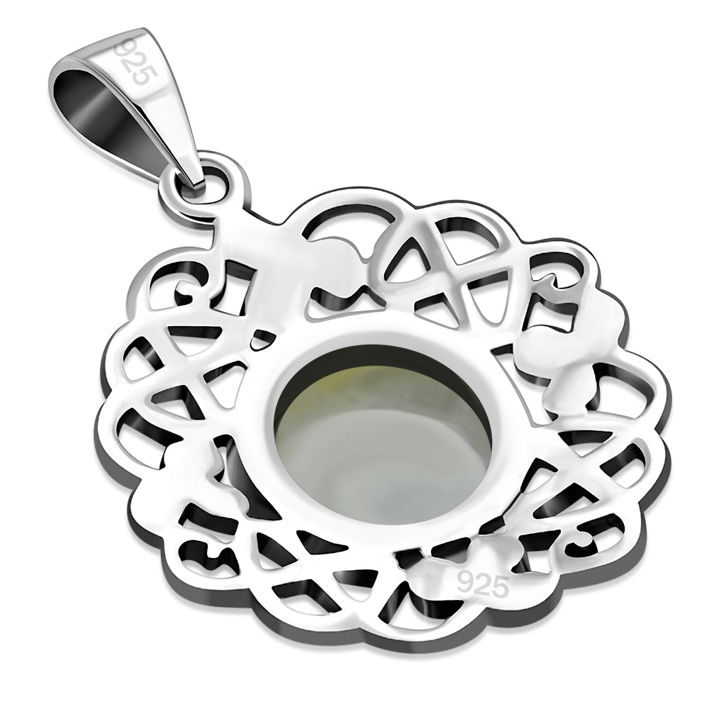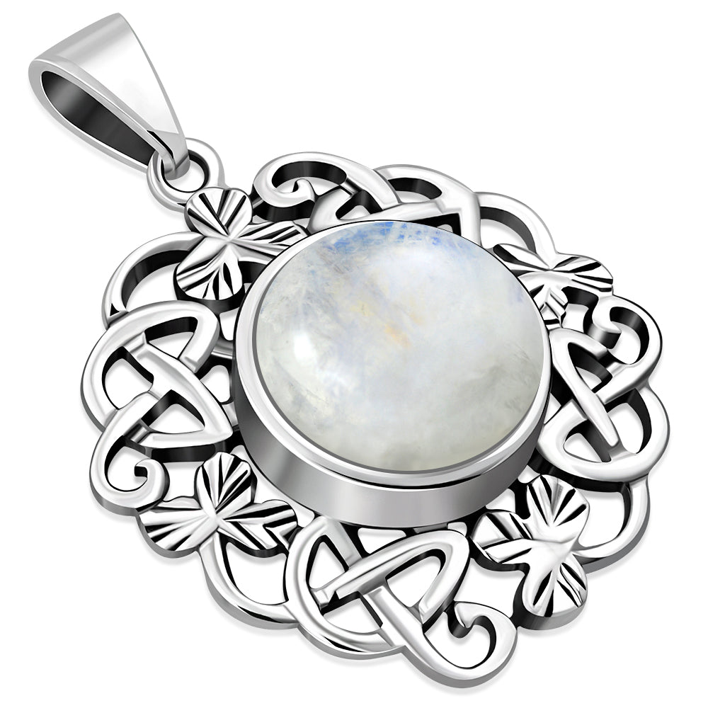 Rainbow Moonstone Celtic Shamrock leaves Silver Pendant