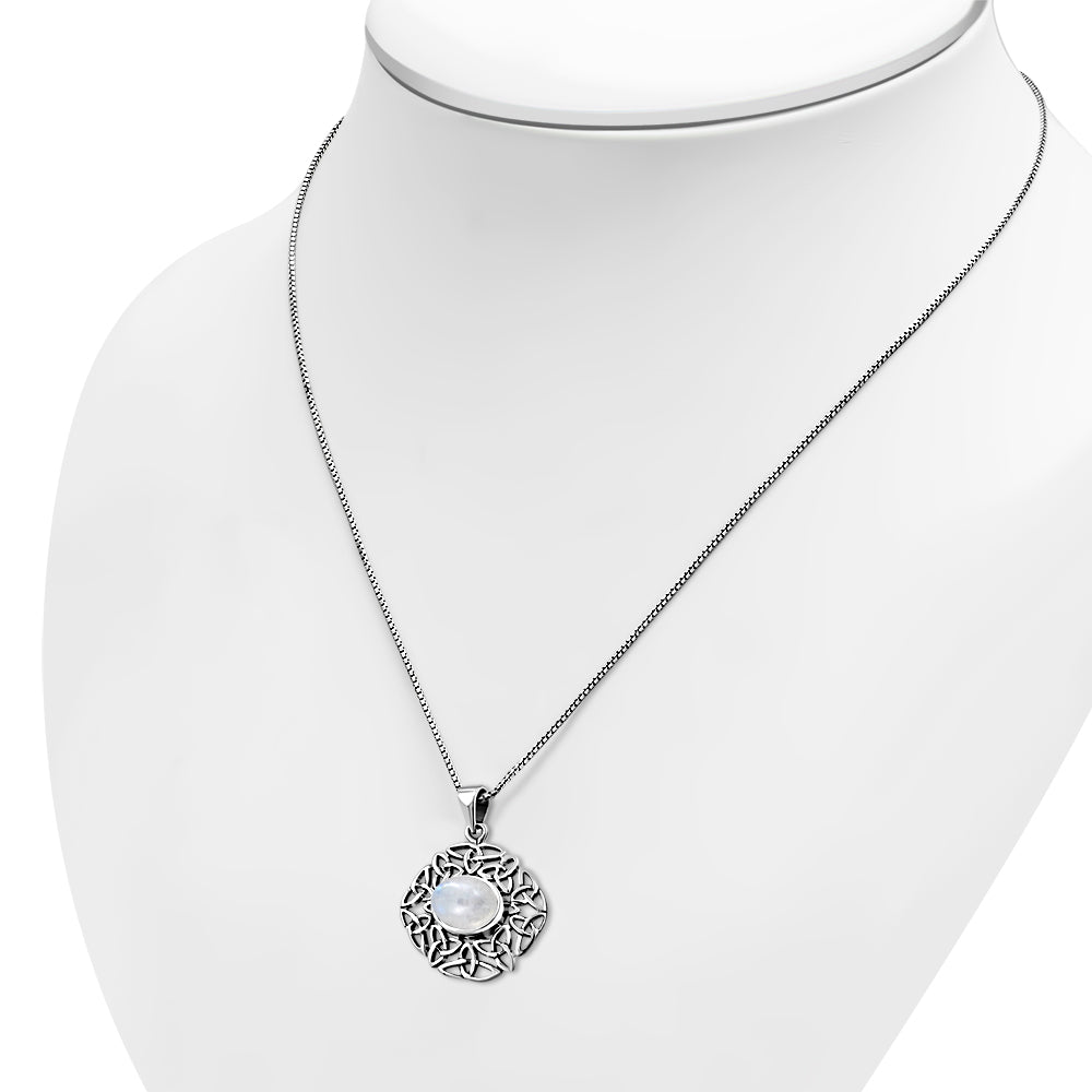 Rainbow Moonstone Trinity Knots Silver Pendant